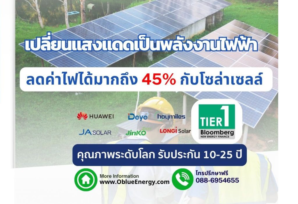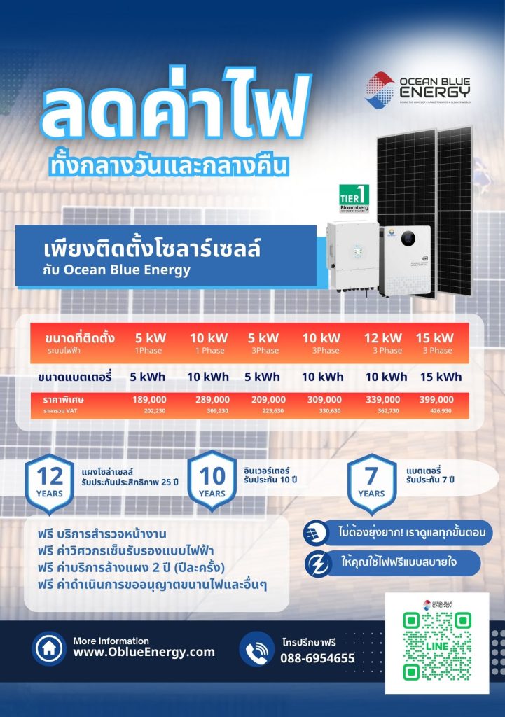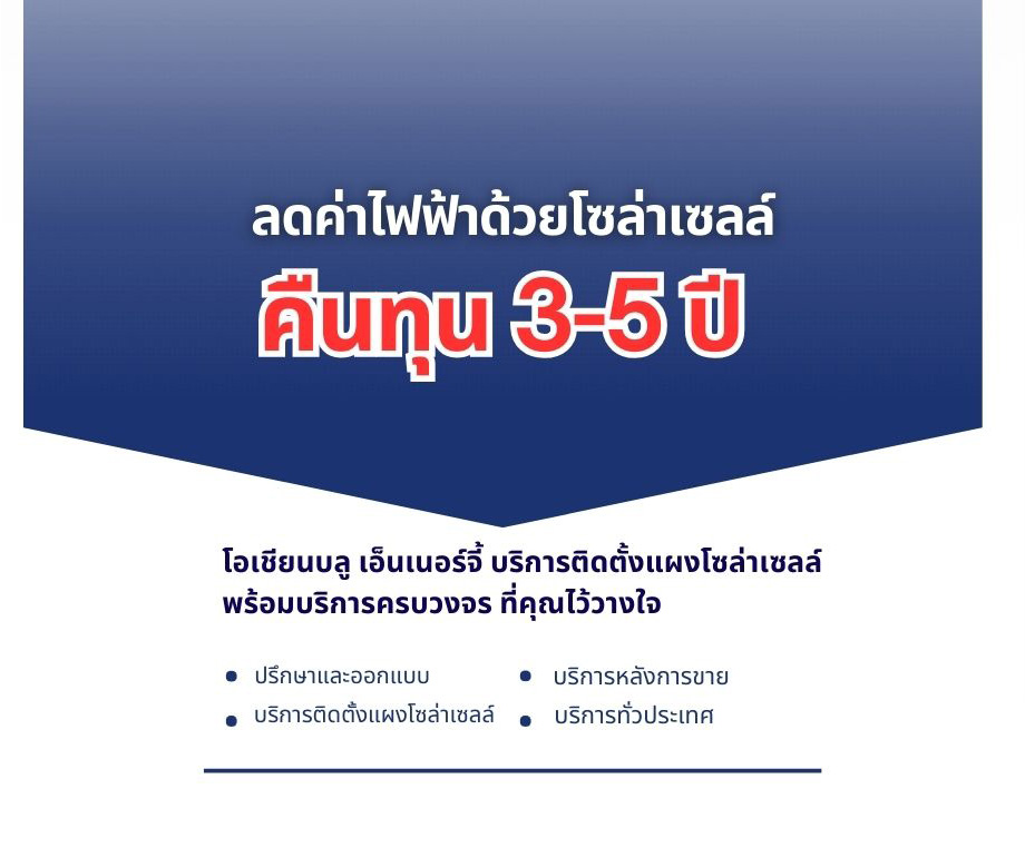 โอเชียนบลู เอ็นเนอร์จี้ บริการติดตั้งแผงโซล่าเซลล์ พร้อมบริการครบวงจร